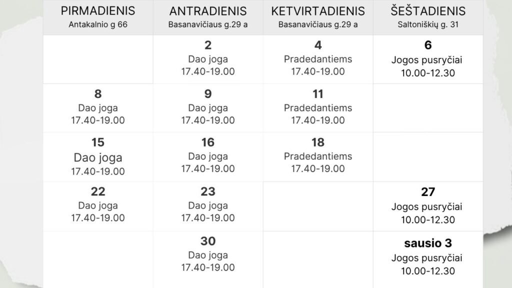 Kaskart išmankštinamas kiekvienas raumuo, išjudinamas kiekvienas sąnarys, pratempiami net tokie giliai gyvenantys raumenys, kuriuos nežinojau esant. Patinka, kad mokytoja papasakoja, kuris pratimas kokio organo veiklą gerina. Namo einu tiesesne nugara ir su šypsena veide.
